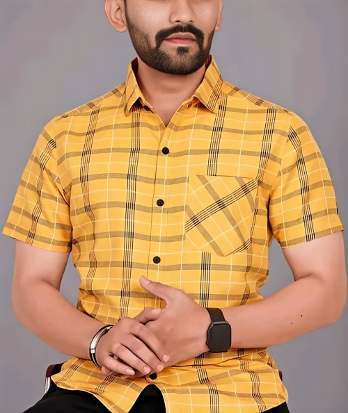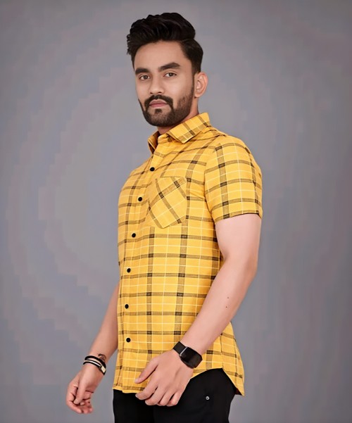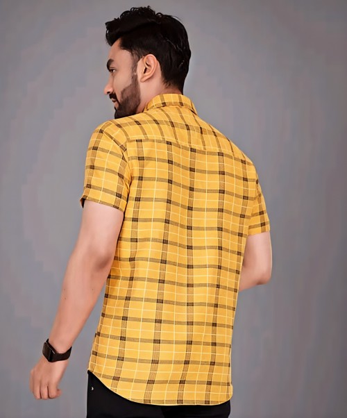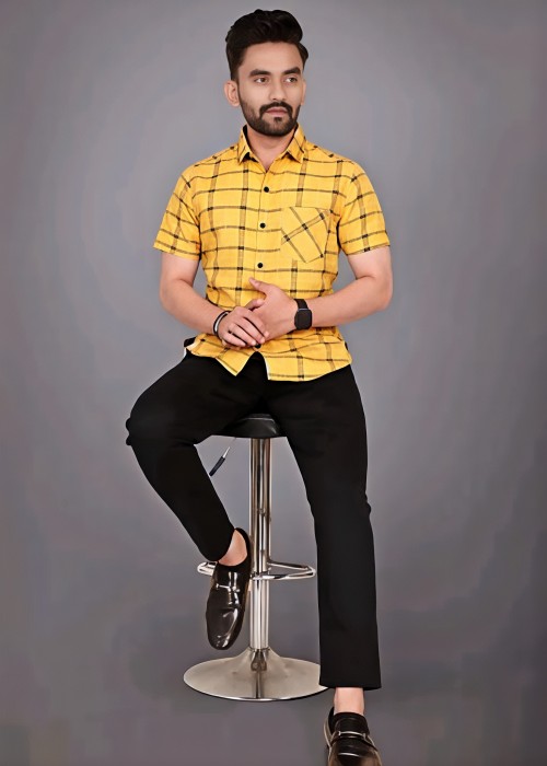 COTTON FABRIC FANCY HALF SLEEVE PRINTED SHIRT YELLOW