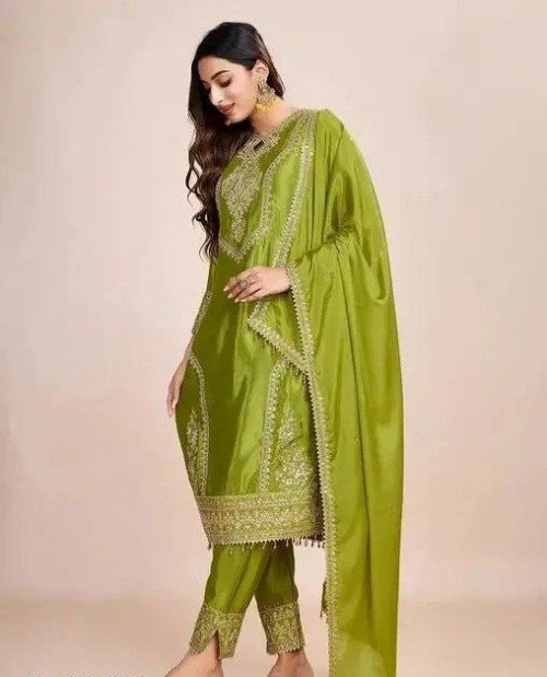 FULLY STICHED KURTA PENT WITH DUPATTA LIGHT GREEN