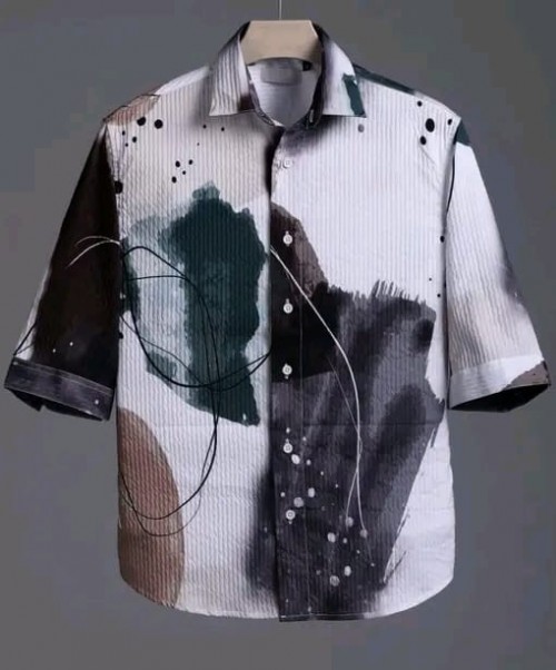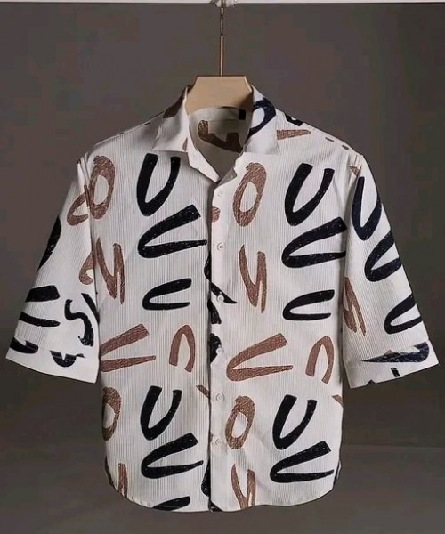COTTON FABRIC FANCY HALF SLEEVE PRINTED SHIRT KHAKI