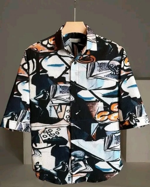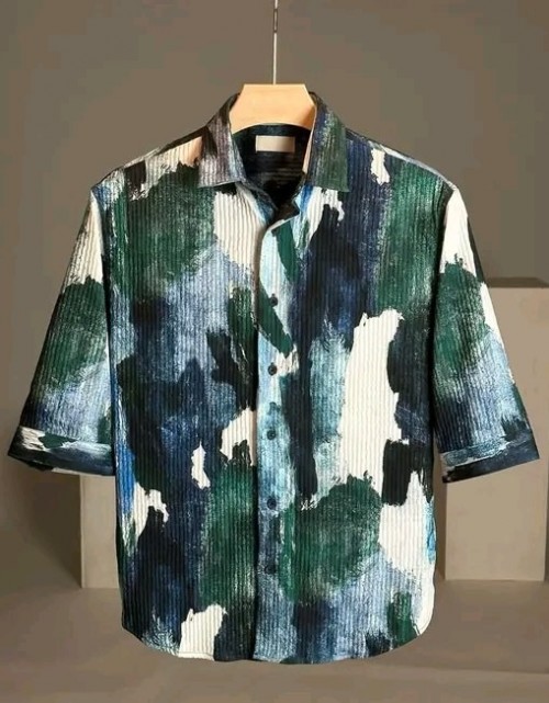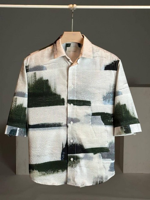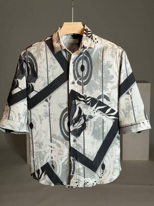 HIGH QUALITY TEXTURE FABRICS SHIRT 3 4 SLEEVE SHIRT PRINTED COTTON FABRICS SHIRT FOR MEN