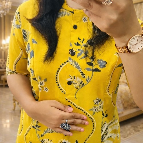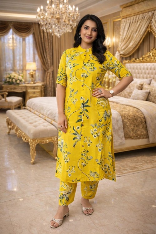 PRINTED KURTI CORD SET YELLOW