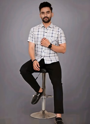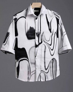 COTTON FABRIC FANCY HALF SLEEVE PRINTED SHIRT (WHITE)