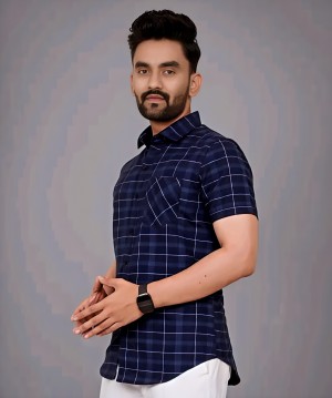 COTTON FABRIC FANCY HALF SLEEVE PRINTED SHIRT (BLUE)