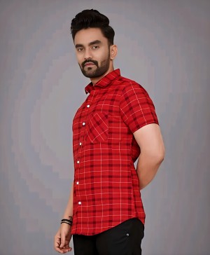 COTTON FABRIC FANCY HALF SLEEVE PRINTED SHIRT RED