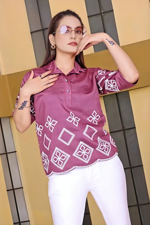 Reyon Embroidery work Women shirt